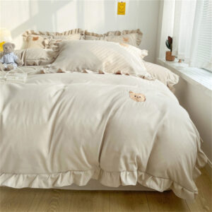 Cute Cartoon Teddy Bear Embroidery Bedding Set, Queen Size