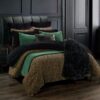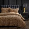 Dripping in glamor and charisma, Adrienne is a striking centerpiece in your modern-chic bedroom. Flaunting a rich gold-and-black leopard print on lightweight chenille fabric, this bedding is both luxuriously warm and stylish. Highlight the boldness of this collection with deep, black accents, such as our Arctic Bear throw and midnight black leather pillow. Add a pop of color and texture by introducing our Stonewashed Cotton Velvet quilt and shams in emerald to the ensemble.