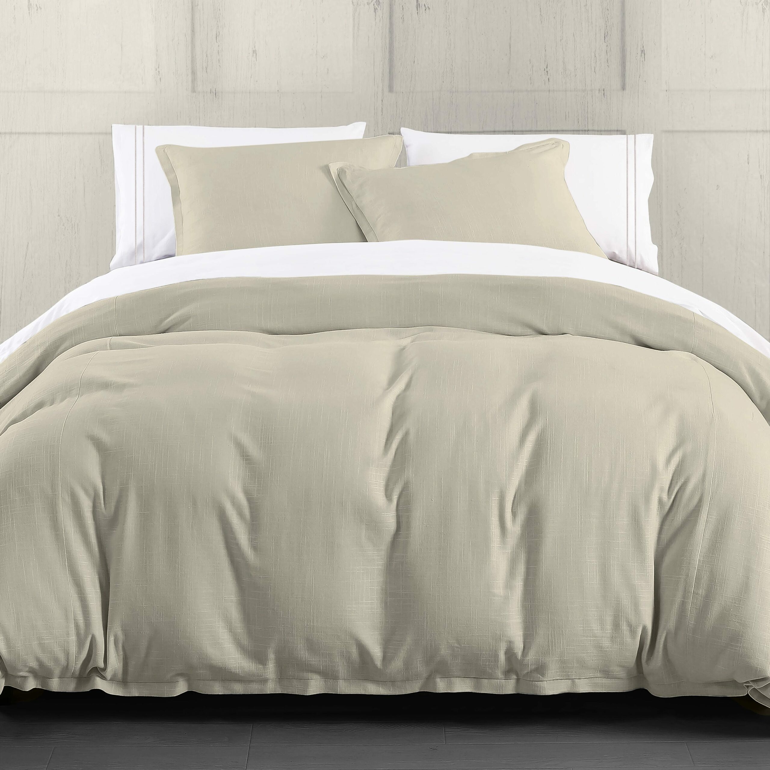 Soft, airy, and simply sophisticated. Our Hera Washed Linen Flange Bedding Set comes in an array of soft, muted colors, accented by a flange border for an elegant finish. With a versatile palette, this bedding set easily blends in with a variety of casual and contemporary styles. Our signature linen-blend is easy to care for and mimics the look and textural appeal of linen—without the creases. Layer with our Stonewashed Cotton Velvet Quilt for a casual yet luxurious look.