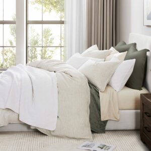 Duvet Cover/Comforter – Face: 70% viscose, 30% linen; Back:100% cotton; Fill (Comforter): 100% polyester