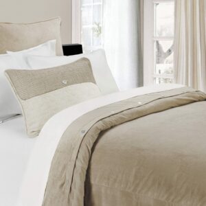 Experience the calming allure of mountain serenity with our Serenity Bedding Set. Artfully woven in metallic silver, light gold, and bronze tones, this modern contemporary set captures the essence of the Sierra Nevada’s meditative peaks in a watercolor-like design. The luxurious jacquard fabric provides a smooth, soft hand, enveloping you in a world of tranquil beauty. Elevate your bedroom’s ambiance by layering it with our High Shine Satin Quilt in Champagne for added shine and luxury, or soften the look with our Stonewashed Cotton Velvet in Vintage White. This versatile style can be used as a bold statement piece or folded down for a subtle, yet striking accent.