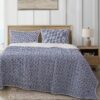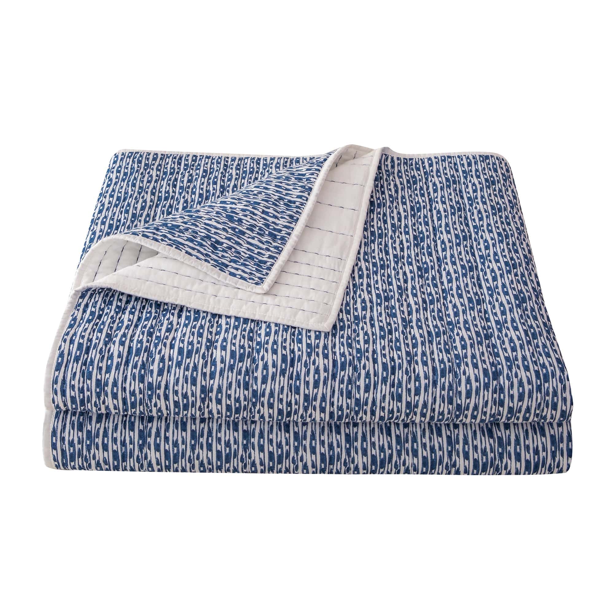 The Staccato Reversible Quilt Set is graced with pensive watercolor shades. One side flows with gentle blue waves, echoing serene ocean ripples, while the reverse unveils a pure white expanse highlighted by nuanced stitching. It pairs beautifully with the Oceania or any of our pristine 100% linen duvets.
