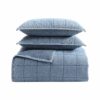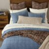 As easy as tugging on your favorite broken‑in jeans, the Stonewashed Denim Quilt Set settles over the bed with effortless calm. Each square of its box‑stitched, stonewashed denim front is softly broken‑in, while the reverse—pure cotton with a brushed hand—rests gentle as a cottonwood puff against your skin. Float it over crisp percale sheets for sun‑bleached summer nights, layer it beneath a patterned wool throw when prairie winds bite, or fold it at the foot of the bed as a casual accent—its sky-blue hue plays well with everything. Durable, machine‑washable and season-spanning, this denim quilt rides effortlessly from ranch retreat to city loft without missing a beat.